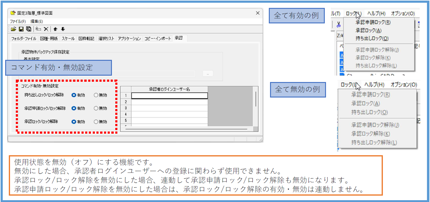持ち出し、承認申請、承認ごとに有効化/無効化の設定機能を追加しました。