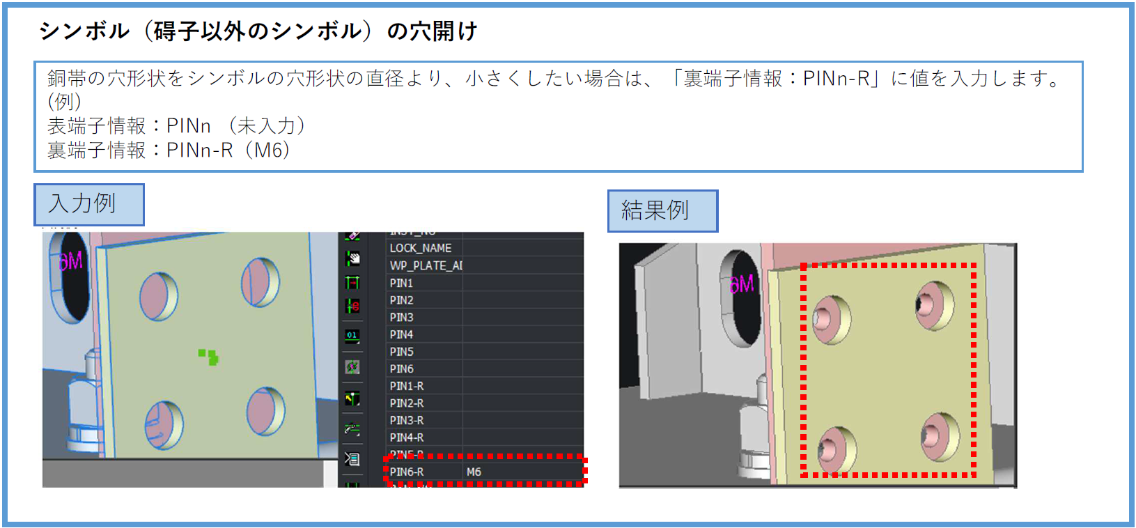 碍子シンボル以外の部品シンボルについて、シンボルの穴形状の直径とは異なる値で銅帯に穴形状を作成する機能を追加しました。